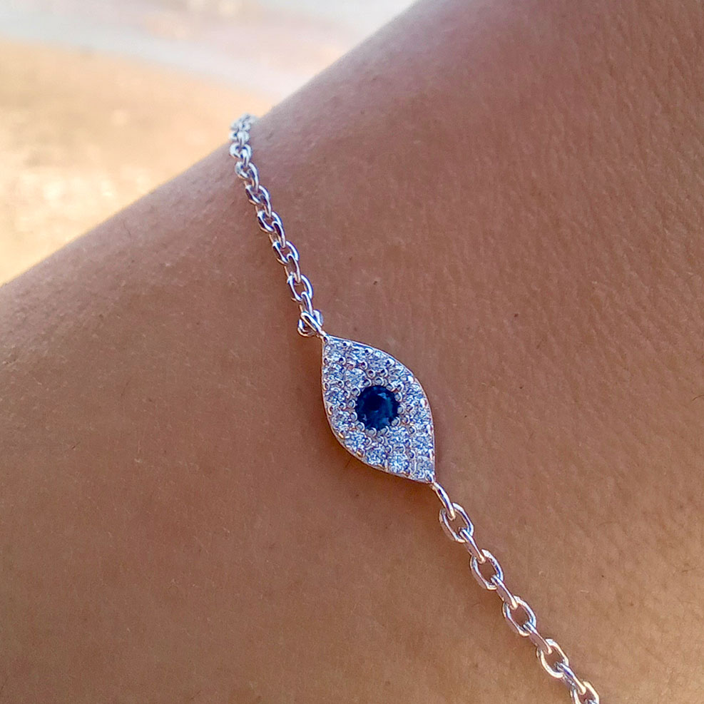 Protect yourself and the people you love with this delicate tiny Greek evil eye silver bracelet.